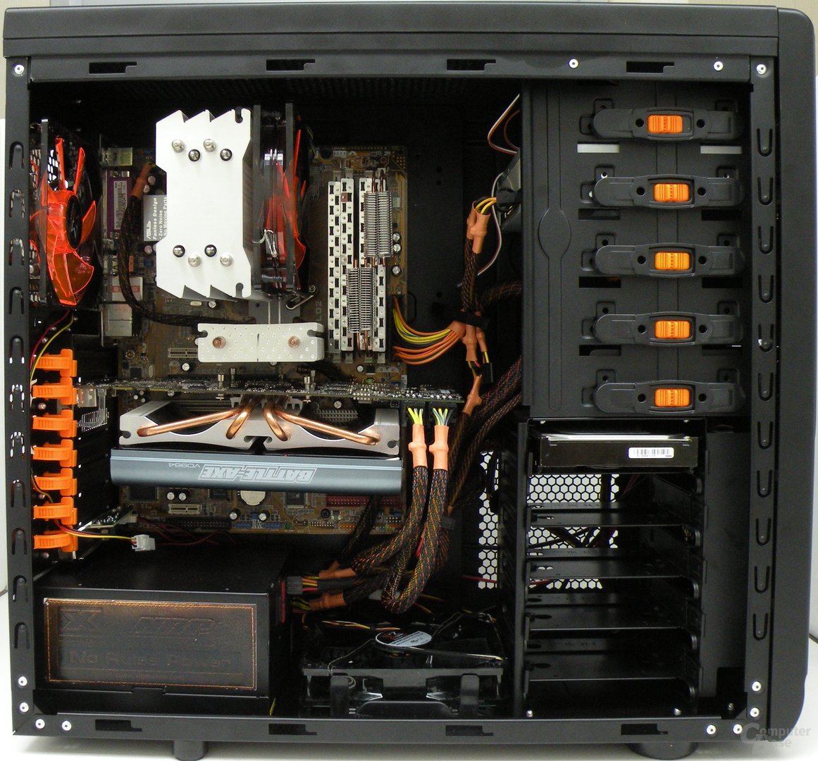 Das P4-Kabel ist ohnehin dünner und damit besser zu legen, das ATX-Kabel is halt dick, aber das NT war sauteuer und bietet auch sehr gute Qualität. Alles wunderbar isoliert und verbunden, sodass kein Knick in die Kabel kommen kann ...