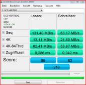 Lese- und Schreibrate der Vertex 2 SSD 60 GB