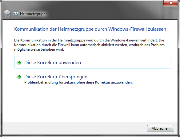 Der Heimnetzgruppe bin ich mittlerweile Testweise beigetreten, bzw habe eine erstellt, auch ohne Erfolg.