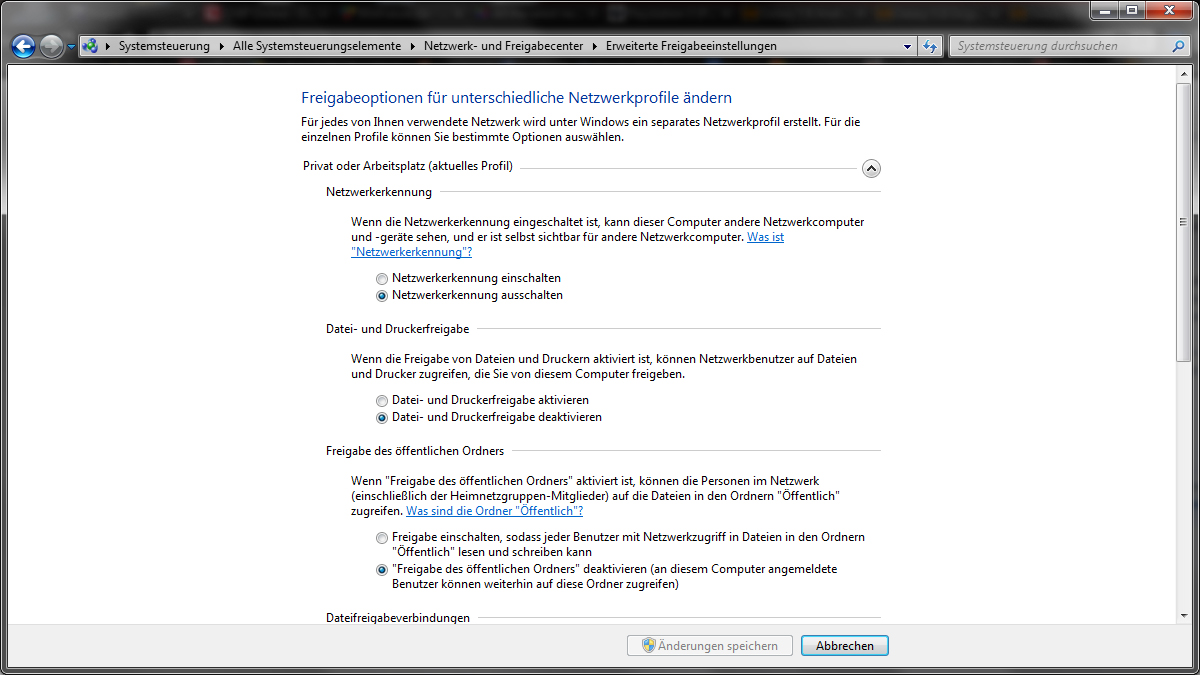 Wenn ich über "Erweiterte Freigabeeinstellungen ändern" klicke, kann ich einstellen was ich will. Auch wenn auf "übernehmen" klicke, erden die Einstellungen nicht gespeichert: