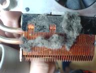 Zwischen den Lüfter und den Kühlkörper ist der komplette Staubfang gewesen, da kann ja nie mehr richtig Luft durchkommen.